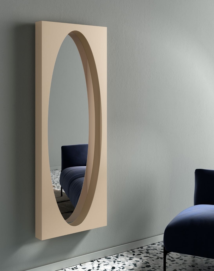 Ogledalo se izrađuje ručno, što dodatno naglašava njegovu kolekcionarsku vrednost i dizajnerski karakter. Dostupno je u tri dimenzije (60 × 60 cm, 100 × 60 cm i 160 × 60 cm), kao i u pažljivo osmišljenoj paleti od deset sofisticiranih boja: Argilla, Burro, Carta, Cielo, Foglia, Fuoco, Liquirizia, Oceano, Pesca i Seta.