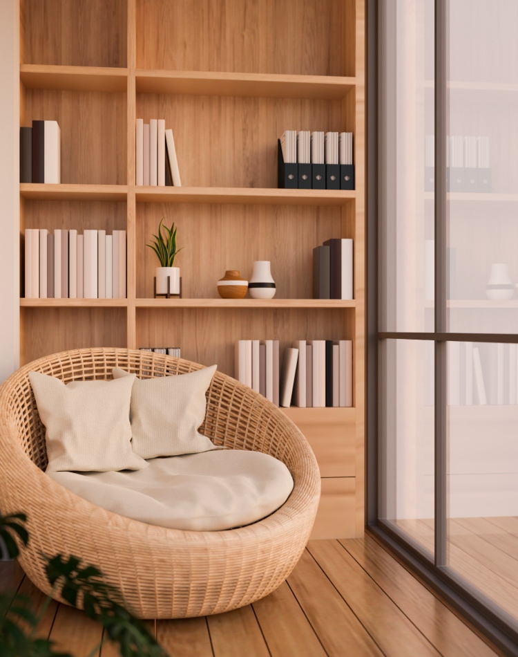 Kompletno opremljeni kutak za čitanje trebalo bi da uključuje komfornu stolicu ili fotelju, stočić ili otoman i možda čak police za knjige, ukoliko prostor to dozvoljava. Pošto je ovakav ambijent za čitanje uglavnom male kvadrature, multifunkcionalni komadi nameštaja predstavljaju praktičnu opciju. Postoji mnogo kombinacija koje možete razmotriti, nalik klupama sa ostavinskim prostorom ispod, stolova sa policama, ali i posebnim stolicama za čitanje sa ugrađenim ostavama.